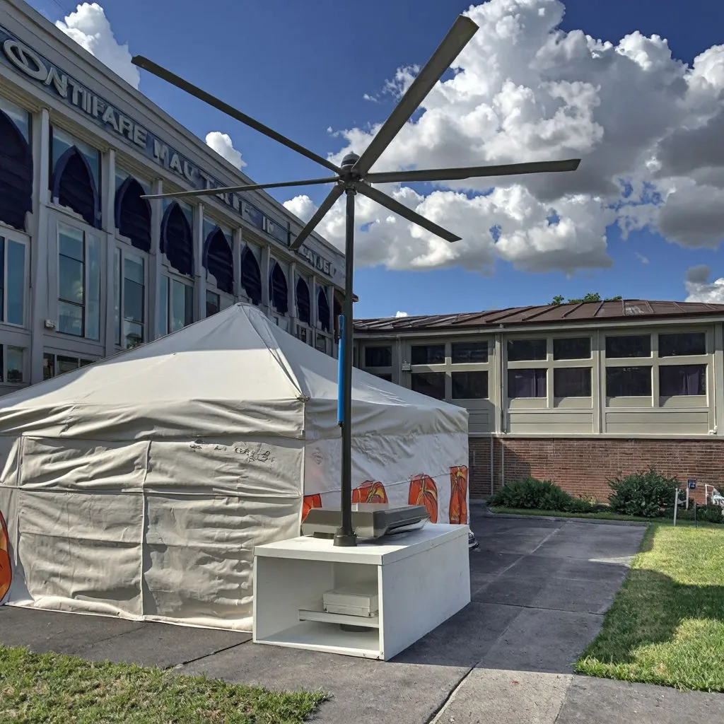 The GYF-L series is a standing fan with a unique airfoil design and blades ranging from 2.4 to 3.7 meters in diameter. Utilizing aerodynamic principles and advanced manufacturing processes, the airfoil blades create a circulating airflow field through powerful air turbulence, generating a gentle breeze system similar to that of nature. The user experiences a three-dimensional breeze from all directions, increasing the surface area for sweat evaporation and enhancing comfort. This avoids the various health problems caused by the constant directional airflow of traditional high-speed fans, significantly improving environmental comfort. The HDS series fans allow for adjustable airflow to suit different needs in various settings, with wind speeds adjustable between 1m and 4.5m/s. In open spaces, a single commercial energy-saving fan can effectively cover an area of up to 330m².